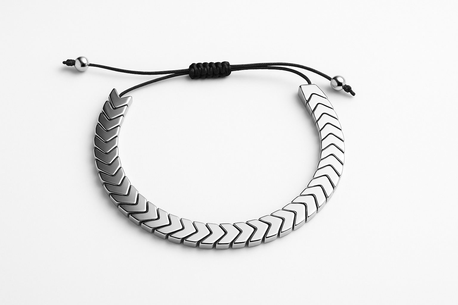 Bold and stylish, the Softones Hematite Arrow Bracelet is crafted to add a rugged edge to any look. Made with premium hematite arrow-shaped beads, this bracelet creates a striking zig-zag pattern that reflects strength, balance, and individuality. Designed with comfort in mind, it features an adjustable cord closure for a perfect fit, making it ideal for daily wear.